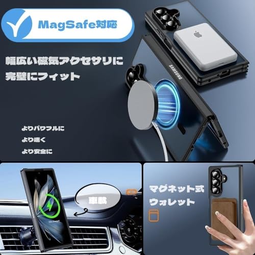 Kawasina Galaxy Z Fold7 ケース MagSafe対応 ギャラクシーZフォールド7 5G ケース ワイヤレス充電 マグネット搭載 半透明マット 耐衝撃 薄型 スマホケース 全面保護 黄ばみ防止Fold7カバー ブラック