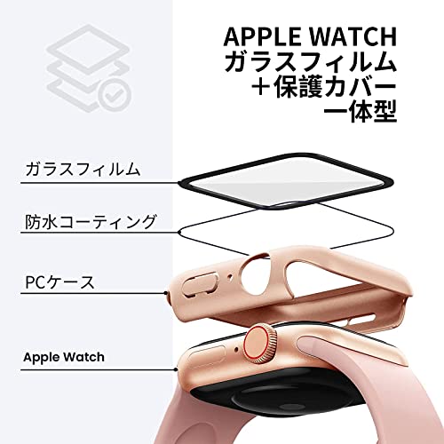 ZIZUCHLE for Apple Watch 9/8/7 用 ケース 45mm アップルウォッチシリーズ 9/8/7 用 保護カバー ガラスフィルム 一体型 PC素材 タッチ感良好 アップルウォッチ 第9世代/第8世代/第7世代 用 カバー 全面保護 高透過率 指紋防止 衝撃吸収(ローズゴールド,45mm)