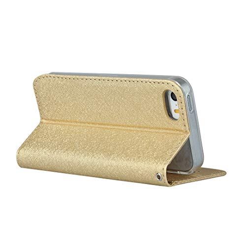 Eastwave for iPhone SE 第1世代 ケース for iPhoneSE(2016)for iPhone 5 5s 通用 ケース Case 手帳型 ストラップ付き 高質PU皮革 明るい色 内蔵マグネット 携帯カバー カードポケット スタンド機能 ゴールド