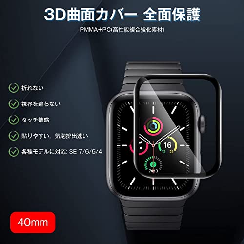 JUNOVA for Apple Watch フィルム 炭素繊維 3D曲面 耐衝撃 高透過率 キズ防止 高感度タッチ 擦り傷防止 40mm Series 6/SE2/SE/5/4 アップルウォッチ 用フィルム 3枚セット