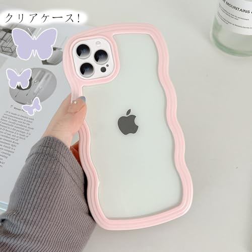 JOOBOY iPhone 13 Pro 6.1" 用 ケース クリア TPU 韓国 可愛い ウェーブ ソフト 滑り止め 薄型 軽量 耐衝撃 おしゃれ スマホケース ストラップホール付き アイフォン13 Pro 用 カバー 透明 (ピンク)