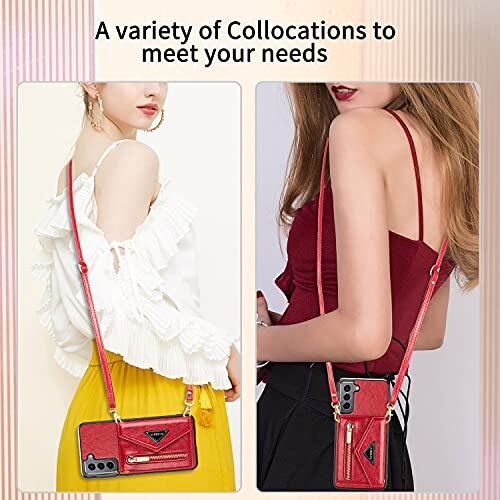 【クロスボディチェーン&リストストラップ】2つの組み合わせ,調節可能ショルダーストラップ長さ1.5メートル、可斜めがけ、可肩掛け。携帯電話が紛失する恐れはなし、ハンドバッグを持たずにどこでも旅行の贅沢さを満喫できます。ケースだけが必要な場合、ストラップは取り外し可能です。
