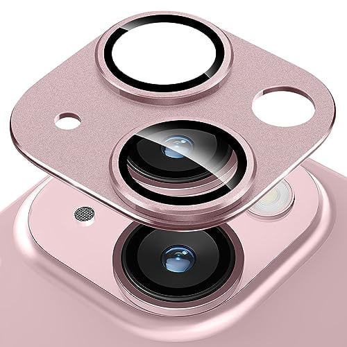 Kakuki For iPhone 15 /iPhone 15 Plus カメラフィルム アルミ合金製+AR高透過率強化ガラス アイフォン15プラス/ アイフォン15 一体型レンズ保護フィルム 耐衝撃 露出オーバー防止 アルミ合金 カメラカバー(iPhone 15/iPhone 15 Plus, ピンク)