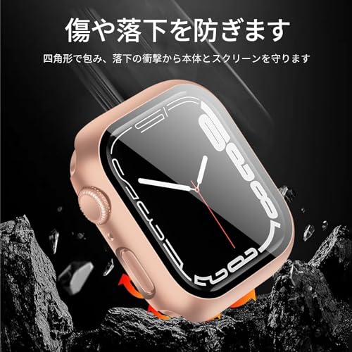 YUGYUG 対応 アップルウォッチ カバー Series 9/8/7 アップルウォッチ ケース PC素材 Apple Watch ケース ガラスフィルム 一体型 日本旭硝子材 二重構造 Apple Watch カバー 全面保護 強化ガラス キズ防止(45mm,ローズゴールド)