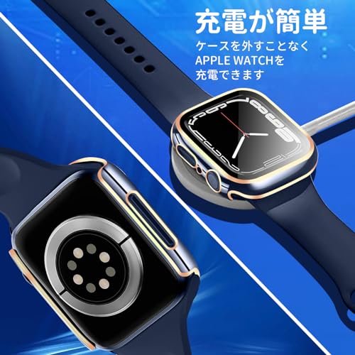 TEMEDO 対応 アップルウォッチ カバー Series 11/10/9/8/7/SE3/SE2/SE/6/5/4/3/2/1 Ultra 3/2/1 Apple Watch ケース PC素材 メッキ加工 Apple Watch カバー ガラスフィルム 一体型 アップルウォッチ ケース 全面保護 高耐久 高透過率 装着簡单(38mm,光沢の光沢のブルー+ゴールド)