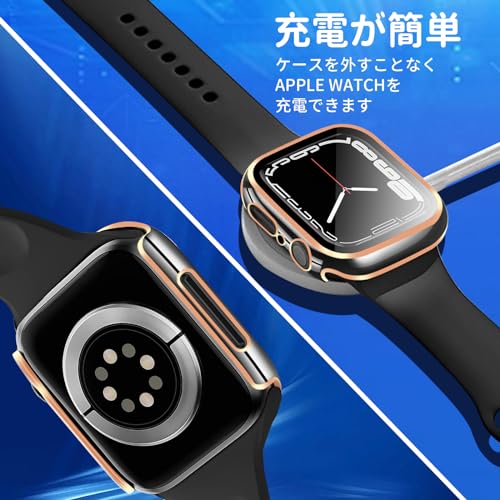 TEMEDO 対応 アップルウォッチ カバー Series 11/10/9/8/7/SE3/SE2/SE/6/5/4/3/2/1 Ultra 3/2/1 Apple Watch ケース PC素材 メッキ加工 Apple Watch カバー ガラスフィルム 一体型 アップルウォッチ ケース 全面保護 高耐久 高透過率 装着簡单(41mm,光沢の光沢のブラック+ローズゴールド)