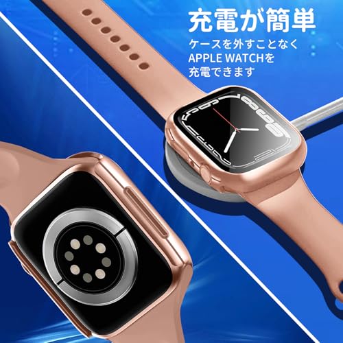TEMEDO 対応 アップルウォッチ カバー Series 11/10/9/8/7/SE3/SE2/SE/6/5/4/3/2/1 Ultra 3/2/1 Apple Watch ケース PC素材 メッキ加工 Apple Watch カバー ガラスフィルム 一体型 アップルウォッチ ケース 全面保護 高耐久 高透過率 装着簡单(40mm,光沢のローズゴールド)