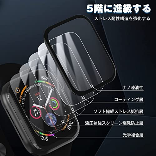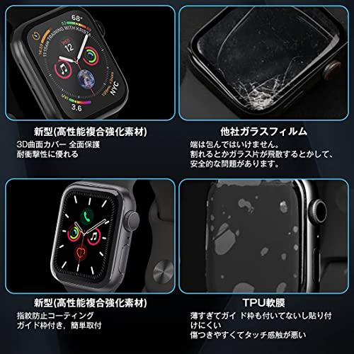 【全新素材】保護フィルムの表面には、日本製の新素材を使用しています。接着剤の表面に使用されているゼリー接着剤は、タッチスクリーンの感度に影響を与えることなく、粘度を高め、Apple watch 40mmの損傷を効果的に防止できます。ソフトエッジデザインが最大限に曲面スクリーンをカバーし、フルカバー効果を提供します。