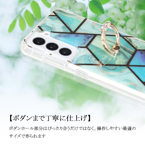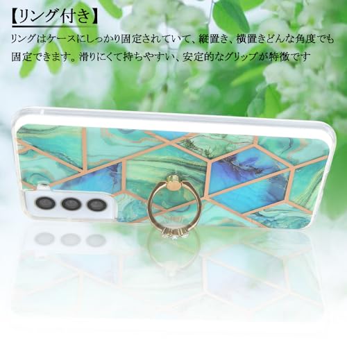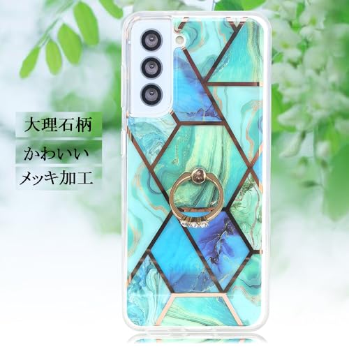 YUYIB ケース 対応 Samsung Galaxy s22 ケース SC-51C SCG13 ケース リング付き 大理石柄 メッキ加工 キラキラ おしゃれ かわいい 女性人気 キャラクター ディズニー 保護カバー 軽量 薄型 ギャラクシーS22用 かばー (グリーン, Galaxy S22)