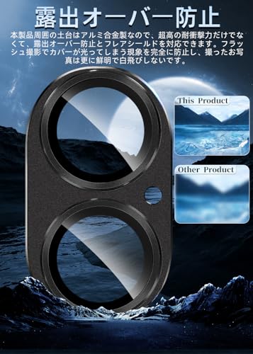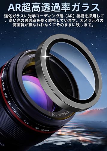 【保護性高い】カメラフィルムはスマホのレンズ部分の全体覆われている,レンズの真ん中にAR超高透過率ガラスを採用され、レンズフィルムの周りにアルミニウム材質で擦り傷や衝撃からカメラレンズをしっかりと守られます。アルミ合金製なので 耐久性は普通のガラス製のカメラフィルムより10倍UP!