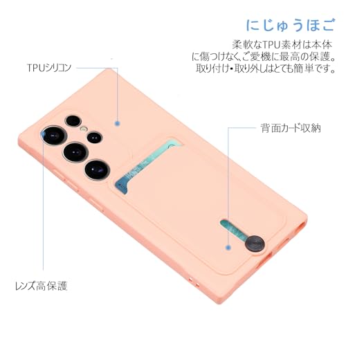 【 Agaiy 】Galaxy S25 Ultra 用 ケース 背面収納 耐衝撃 カード収納 サムスン ギャラクシー S25ウルトラスマホケース マット上質な手触り TPU シリコンカバー 薄型 軽量 全面保護ストラップホール付き 落下防止 S25ultra 保護ケース (ラブリーピンク)