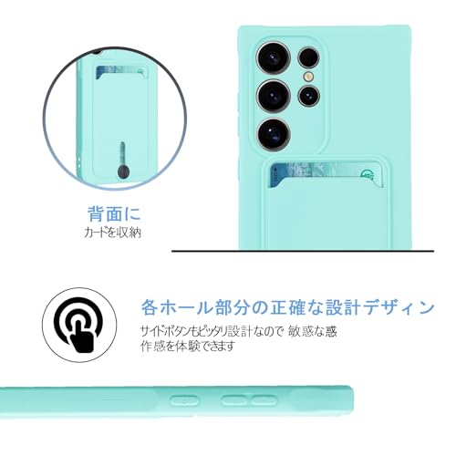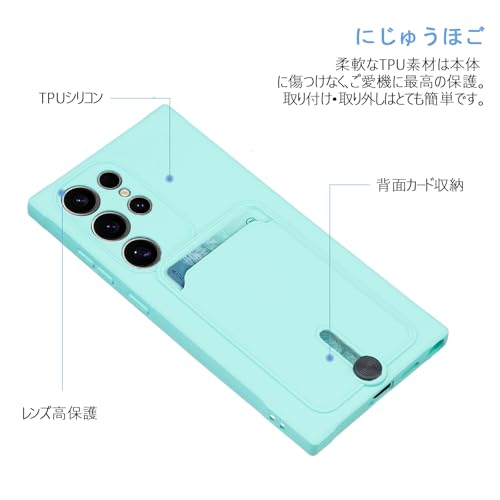 【 Agaiy 】Galaxy S24 Ultra 5G 用 ケース 背面収納 耐衝撃 カード収納 サムスン ギャラクシー S24ウルトラ5G スマホケース マット上質な手触り TPU シリコンカバー 薄型 軽量 全面保護ストラップホール付き 落下防止 S24ultra 保護ケース (ライトシアン)