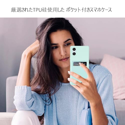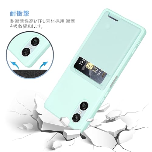 【 Agaiy 】 Xperia 5 V/SO-53D/SOG12 用 ケース 背面収納 耐衝撃 カード収納 ソニー エクスペリア5v スマホケース マット上質な手触り TPU シリコンカバー 薄型 軽量 全面保護ストラップホール付き 落下防止 xperia 5v 保護ケース (ライトシアン)