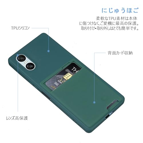【 Agaiy 】 SONY Xperia 10 VI/SO-52E /SOG14 /XQ-ES44 用 ケース 背面収納 耐衝撃 カード収納 ソニー エクスペリア10 viスマホケース マット上質な手触り TPU シリコンカバー 薄型 軽量 全面保護ストラップホール付き 落下防止 xperia 10 vi 保護ケース (ダークナイトグリーン)