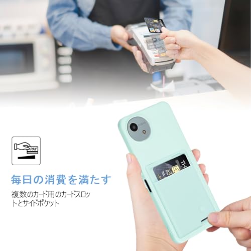 【 Agaiy 】 AQUOS wish5/SH-52F 用 ケース 背面収納 耐衝撃 カード収納 シャープ アクオス ウィッシュ5 スマホケース マット上質な手触り TPU シリコンカバー 薄型 軽量 全面保護ストラップホール付き 落下防止 wish5 保護ケース (ライトシアン)