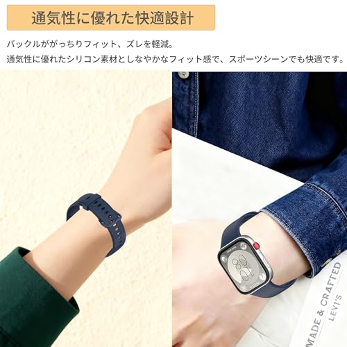 【柔軟なシリコンマテリアル】シリコン素材本来の優れた柔軟性により、バンドが手首のカーブに自然にフィットします。長時間のご使用でも、圧迫感や跡が残りにくく、一日中快適な装着感をお届けします。
