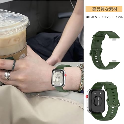 [AnnTec] For HUAWEI Watch Fit 4 Pro/Fit 4 / Fit3 交換ベルト バンド 替えベルト シリコン製 スポーツバンド 防水 通気性 ソフト スマートウォッチベルト シンプル 取付簡単 軽量 耐久性 調整可能 男女兼用 (オリーブ)