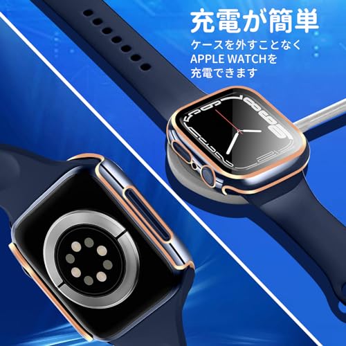 TEMEDO 対応 アップルウォッチ カバー Series 11/10/9/8/7/SE3/SE2/SE/6/5/4/3/2/1 Ultra 3/2/1 Apple Watch ケース PC素材 メッキ加工 Apple Watch カバー ガラスフィルム 一体型 アップルウォッチ ケース 全面保護 高耐久 高透過率 装着簡单(40mm,光沢の光沢のブルー+ローズゴールド)