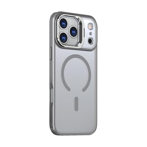 LILAS SHENSHINE iPhone 17 Pro Max 用 ケース MagSafe対応 180°回転スタンド付き リング付き マットカラー 米軍規格 耐衝撃 カメラ保護 マグネット搭載 ワイヤレス充電対応 軽量 ストラップホール付き (グレー)