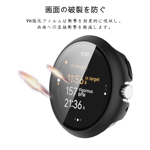 【全面保護カバー】高透明度の日本製ガラスと約1.3mmの薄さ、わずか2.13gの軽量なPC枠を採用。これにより、外部の衝撃から大切なGoogle Pixel Watchを守ります。硬度9Hの強靭な液晶部保護フィルムも備えています。さらに、透明度の高い液晶ガラス素材を使用しており、本来の明るくカラフルな画質を保ちます。