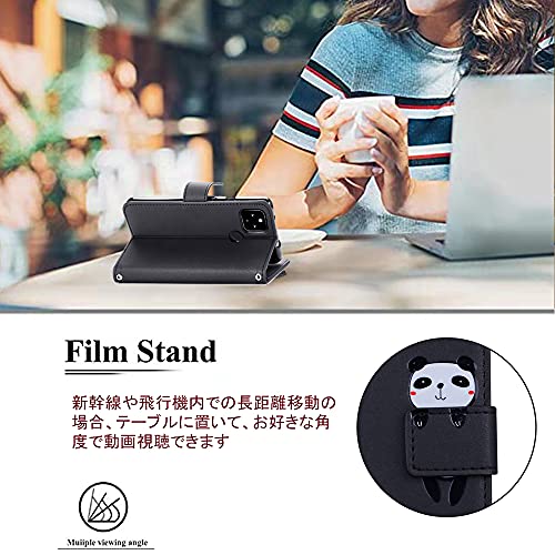 Google Pixel 4a 5G ケース 手帳型 グーグル Pixel 4a 5Gケース ピクセル 4a 5G 手帳型ケース 財布型 カバー 可愛い キャラクター 携帯ケース スマホケース 携帯カバー レザー 柔らかいTPUケース 肌触り良い革 スマホけーす ケータイケース カード収納 財布付き カードホルダー ベルトマグネット スタンド機能 パンダ かわいい 動物柄 薄型 防水 ノート型 人気 おしゃれ 男女兼用 Google Pixel 4a 5G 対応 ブラック