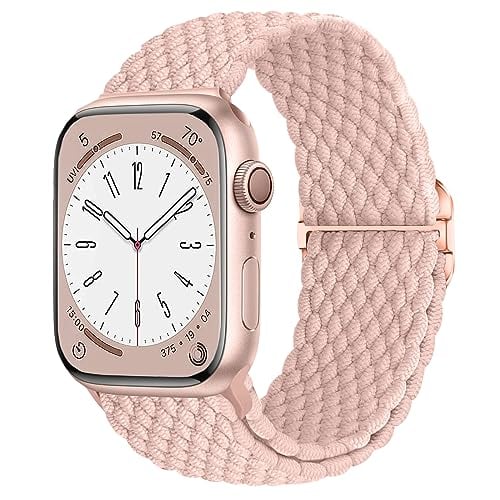 コンパチブル Apple Watch バンド ブレイデッドソロループ ベルト 無段階に調整な緩み防止バックル デザイン ファッションで快適な伸縮性で通気性の良いストラップ アップルウォッチシリーズ SE 10 9 8 7 6 5 4に対応 (42mm 41mm 40mm, サンドピンク)