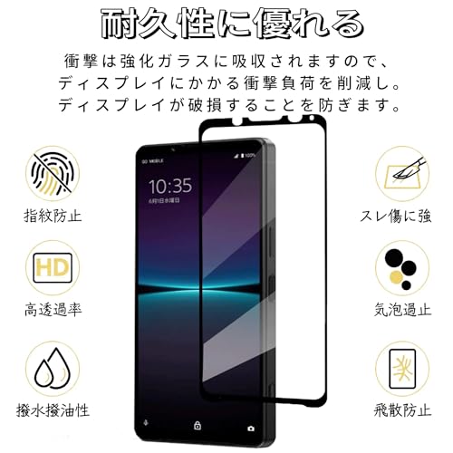 対応 Xperia 1 IV/SO-51C/SOG06 ガラスフィルム2枚セット 全面保護 保護フィルム 液晶強化ガラス【9H硬度、高耐久性、全面保護、防振破砕、貼り合わせやすい、防水防油、防塵、高透光率、気泡なし、滑らかな感触、指紋防止】対応 Xperia 1 IV