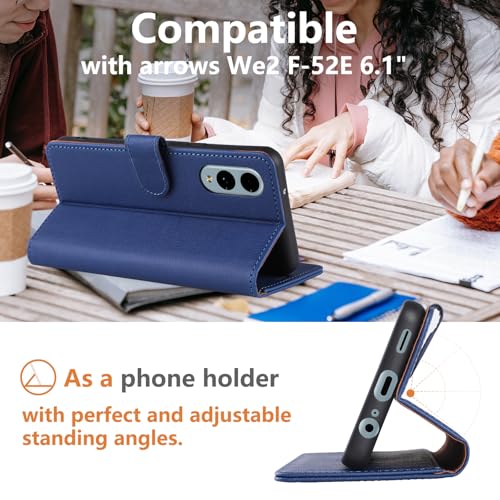 Hianjoo Arrows We2 F-52E 対応 ケース 手帳型 財布型 PUレザー カード収納 横置き スタンド機能付き マグネット式 耐衝撃 全面保護 Arrows We2 FCG02 対応 スマホケース 携帯カバー [ブルー]