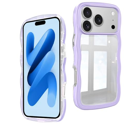 iPhone 17 Pro Max 用 ケース 波型 クリア 透明 背面ケース スマホケース 可愛い アイフォン17 Pro Max 用 カバー 耐衝撃 滑り止め ストラップホール付き 紫 ウェーブ おしゃれ デザイン 全面保護 iPhone 対応 カバー 持ちやすい 6.9インチ 韓国 人気 パープル