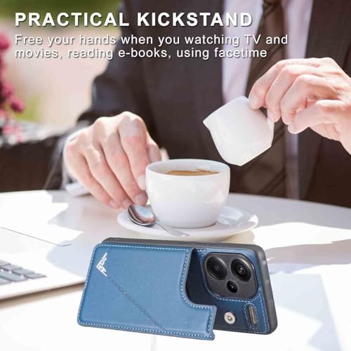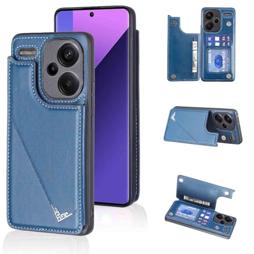 【Anrek】新型 XIAOMI Redmi Note 13 Pro Plus 5G 用 背面 カードケース 手帳型 ランヤード付 背面カバー (ネイビーブルー) シャオミ レッドミー13プロ プラス 5g スマホケース サイドマグネット カード収納 横置き機能 PUレザー 財布型 携帯カバー シャオミnote13pro+ BLUE