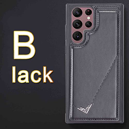 【Anrek】新型 SAMSUNG Galaxy S25 Ultra 5G/SC-52F/SCG32 用 背面 カードケース 手帳型 ランヤード付 背面カバー (ブラック)ギャラクシーs25ウルト ラ スマホケース サイドマグネット カード収納 横置き機能 PUレザー 財布型 携帯カバー サムスンs25u BLACK