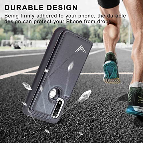 【Anrek】新型 FUJITSU arrows We/docomo F-51B / au FCG01 / Softbank A101FC 用 背面 カードケース 手帳型 ランヤード付 背面カバー ( ブラック )ドコモf51b スマホケース サイドマグネット カード収納 横置き機能 PUレザー 財布型 携帯カバー 富士通f51b BLACK