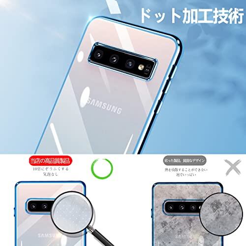 Galaxy S10 ケース クリア 耐衝撃 SC-03L SCV41 カバー 透明 保護カバー 韓国 かわいい 薄型 柔軟 軽量 TPU メッキ加工 ソフトケース 人気(ブルー)