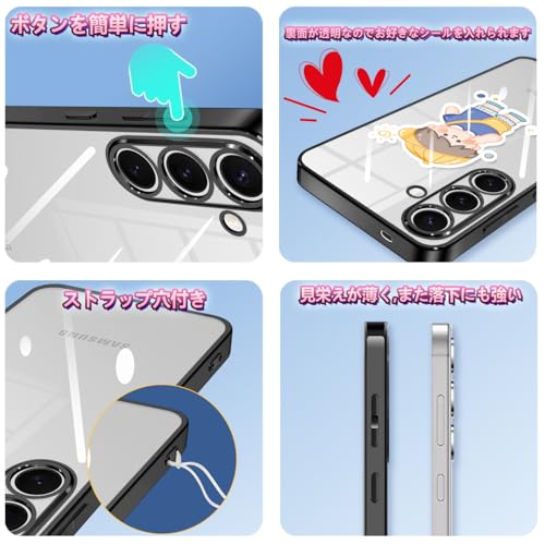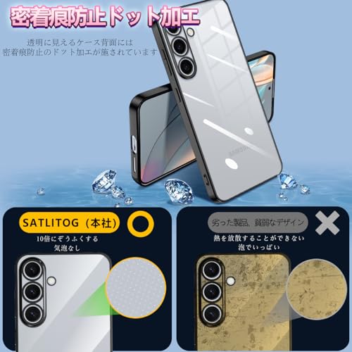 SATLITOG ケース 用の Galaxy S25 クリア SC-51F SCG31 耐衝撃 ギャラクシーS25 用の カバー 透明 メッキ加工 完全な保護 落下防止 黄変防止 ファッション 薄型 軽量 TPU 柔らかい ワイヤレス充電 人気 保護カバー (ブラック)