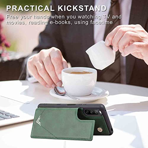 【Anrek】新型 SONY Xperia 5 III/docomo SO-53B / au SOG05 用 背面 カードケース 手帳型 ランヤード付 背面カバー (ダルグリーン) ソニー エクスペリア ファイブ マーク ススリー ファイブジー ドコモso53b スマホケース サイドマグネット カード収納 横置き機能 PUレザー 財布型 携帯カバーxperia5iii GREEN