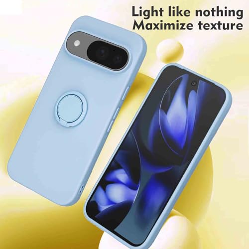 【Aqier】Google Pixel 9/Pixel 9 Pro 用 携帯ケース ソフト スマホケース(ブルー)リングケース ピクセル9 ピクセル9プロ 極薄 TPU 耐衝撃 スタンド機能 360°回転 車載ホルダー カバー グーグルpixel9pro Blue