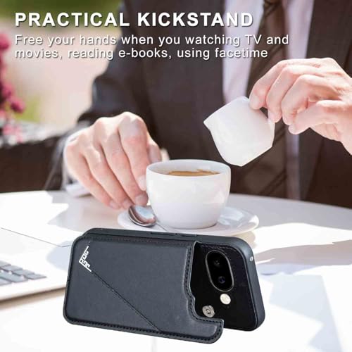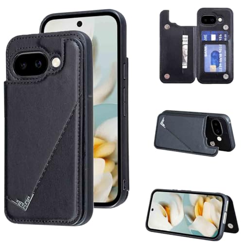 【Anrek】新型 Google Pixel 9A 用 背面 カードケース 手帳型 ランヤード付 背面カバー (ブラック)ピクセル9a スマホケース サイドマグネット カード収納 横置き機能 PUレザー 財布型 携帯カバー グーグルpixel9a BLACK