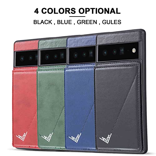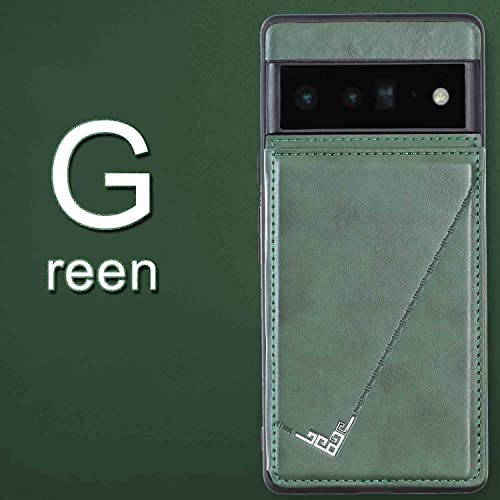 【Anrek】新型 GOOGLE Pixel 6 au Softbank 用 背面 カードケース 手帳型 ランヤード付 背面カバー (ダルグリーン) グーグル ピクセル6ソフトバンクpixel6 スマホケース サイドマグネット カード収納 横置き機能 PUレザー 財布型 携帯カバーpixel6 GREEN