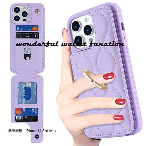 Cavor iPhone 11 手帳型ケース 背面ポケット付き iPhone 11 財布型 ケース アイホン11 スマホケースカードポケット【上下開】iPhone 11 携帯ケース薄型 iPhone 11 case カード収納 360°回転リング 可愛い 全面保護 免許証とクレジットカード 横置 Qi急速充電対応 磁気機能 落下防止 指紋防止- パープル