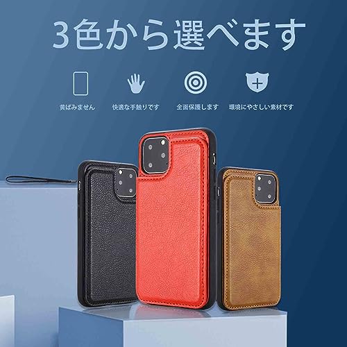 【OULO1】iPhone 11 PRO 5.8 inch 用 ケース レザー 人気 カード収納 スマホケース 耐衝撃 軽量 スタンド機能 薄い 背面 IC カード入れ 手帳型 財布型 カバー(レッド)アイフォーン 11 PRO 5.8インチ アイフォン11pro Red