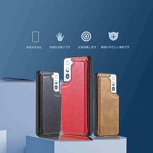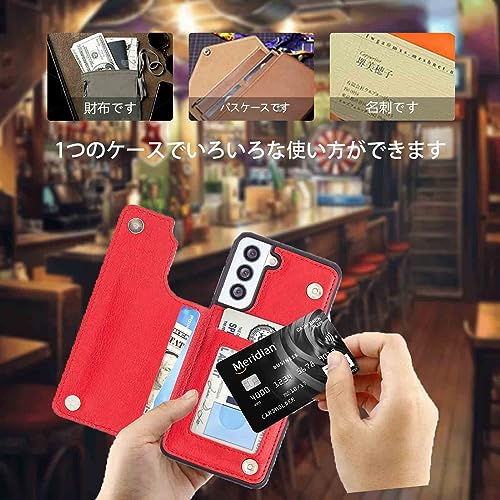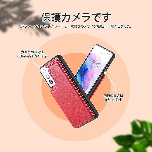 【OULO1】Galaxy S21 5G/docomo SC-51B /au SCG09 用 ケース レザー 人気 カード収納 スマホケース 耐衝撃 軽量 スタンド機能 薄い 背面 IC カード入れ 手帳型 財布型 カバー(レッド)ギャラクシー エス21 ドコモsc51b サムスンs21 Red