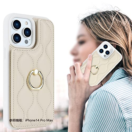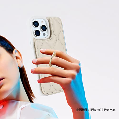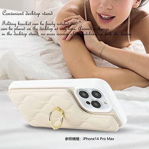 Cavor iPhone 15 Plus 手帳型ケース 背面ポケット付き iPhone 15 Plus 財布型 ケース アイホン15 Plus スマホケースカードポケット【上下開】iPhone 15 Plus 携帯ケース薄型 iPhone 15 Plus case カード収納 360°回転リング 可愛い 免許証とクレジットカード 横置 Qi急速充電対応 磁気機能 落下防止-ホワイト