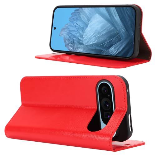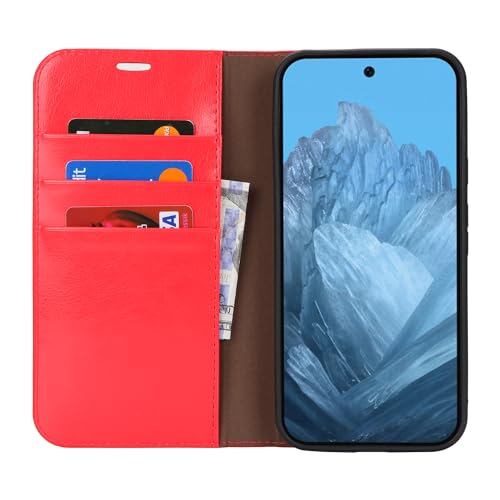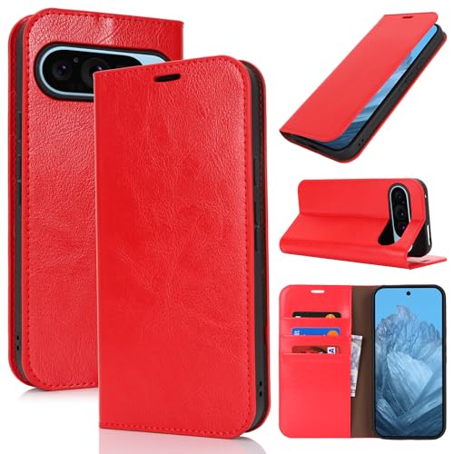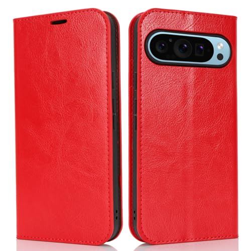 Pelanty for Pixel 9 Pro XL ケース手帳型 携帯カバー 手作り 本革レザー 財布型カバー カード収納 スタンド機能 耐衝撃 マグネット無し 開閉ベルト無し グーグル ピクセル9pro XL スマホケース【選べる4色】レッド