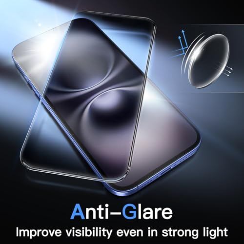 JETech iPhone 16 Plus 6.7インチ用 マット液晶保護フィルム 防眩光 9H強化ガラス製 指紋防止 スムーズタッチ 簡単に取り付け ケースに干渉なし 2枚セット