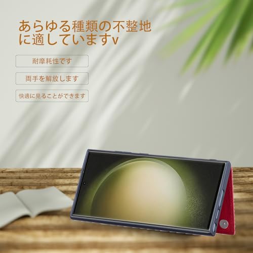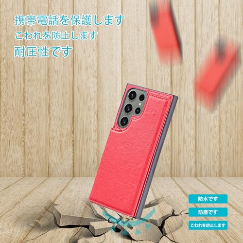 【OULO1】Galaxy S23 Ultra 5G/docomo SC-52D/au SCG20 用 ケース レザー 人気 カード収納 スマホケース 耐衝撃 軽量 スタンド機能 薄い 背面 IC カード入れ 手帳型 財布型 カバー(レッド)ギャラクシー エス23 ウルトラ ドコモsc52d サムスンs23u Red