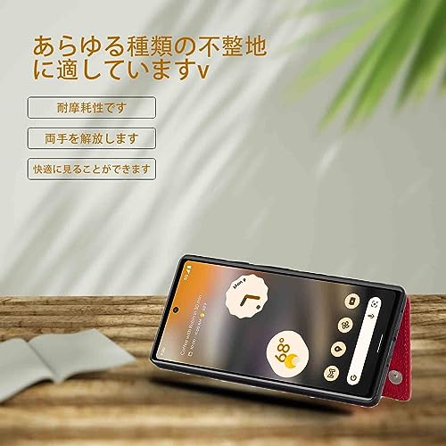 【OULO1】GOOGLE Pixel 6A 5G au Softbank 用 ケース レザー 人気 カード収納 スマホケース 耐衝撃 軽量 スタンド機能 薄い 背面 IC カード入れ 手帳型 財布型 カバー(レッド)グーグル ピクセル6a 5g ソフトバンクpixel6a Red