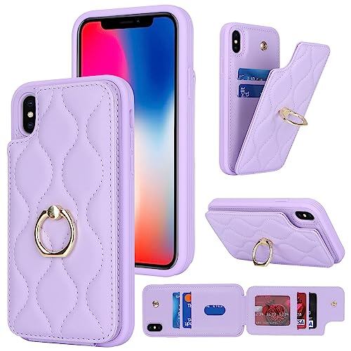 Cavor iPhone XS iPhone X 手帳型ケース 背面ポケット付き iPhoneX 財布型 ケース iPhone XS手帳型ケースアイホンXS スマホケースカードポケット【上下開】iPhoneXS 携帯ケースiPhone10 case カード収納 360°回転リング 可愛 免許証とクレジットカード 横置 Qi急速充電対応 磁気機能 落下防止- パープル