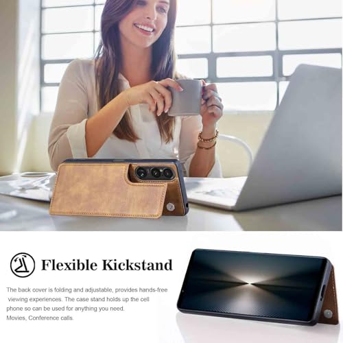 【Geshh】Xperia 1 VII/SO-51F/ XQ-FS44 /SOG15 対応 財布型ケース カード収納 左右開 薄型軽量 カバー(レトロブラウン)背面ケース スタンド機能 手触りが良い 上質 スキミング防止 手帳型ケース 適用 ソニー エクスペリア1VII ドコモso51f xperia 1 VII 薄い茶