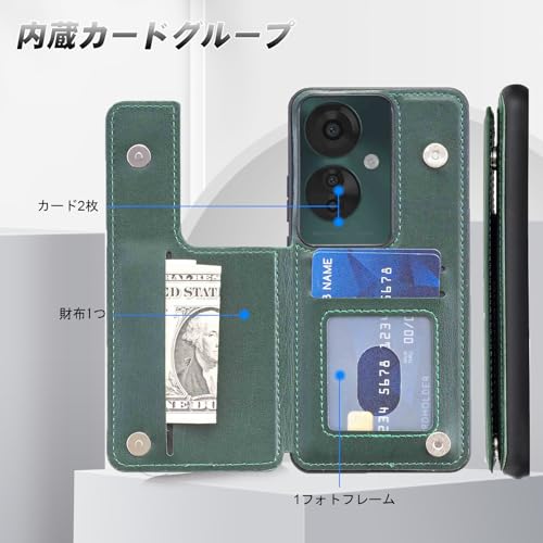 【 Antimam 】背面カード 手帳型ケース 対応 OPPO RENO11 A /RENO11 F 5Gスマホバックカバー ( ダークグリーン )手作り お洒落シンプル 軽量 耐久性 カード収納 スタンド機能付き 財布型 落下防止 オッポ リノ11A ケース Reno11a GREEN