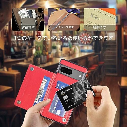 【OULO1】GOOGLE Pixel 7A 用 ケース レザー 人気 カード収納 スマホケース 耐衝撃 軽量 スタンド機能 薄い 背面 IC カード入れ 手帳型 財布型 カバー(レッド)グーグル ピクセル7a ドコモ pixel7a Red